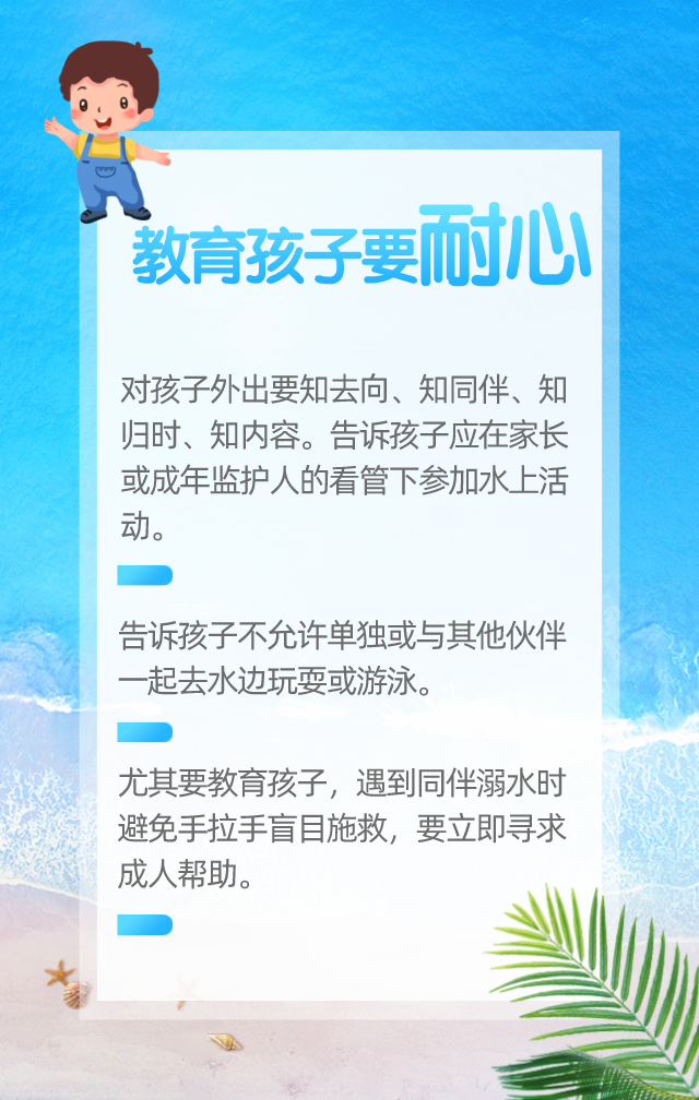 夏季溺水悲剧中,绝不仅是因为孩子不省心,家长的责任其实更大。记住“六个心”,保证你家孩子这个夏天为你们省心。